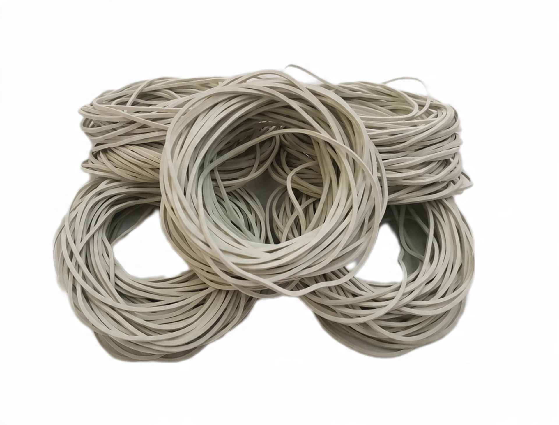 Białe gumki recepturki wykonane z lateksu o podwyższonej zawartości kauczuku, zapewniające wyjątkową wytrzymałość i elastyczność. Doskonałe do różnorodnych zastosowań w biurze, domu i przemyśle.