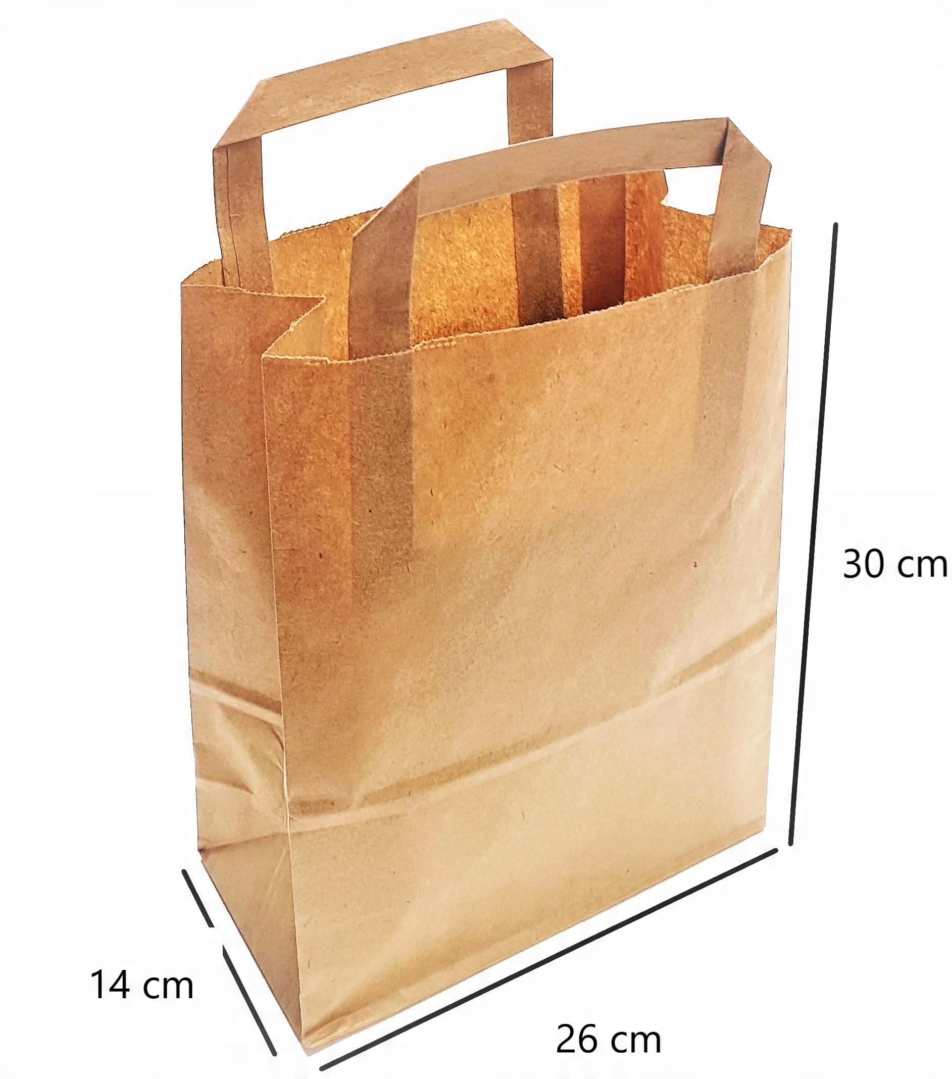 Strona główna » Sklep » Torby papierowe brąz 260x140x300 mm ucho płaskie 70g/m2 (karton- 250 szt.)