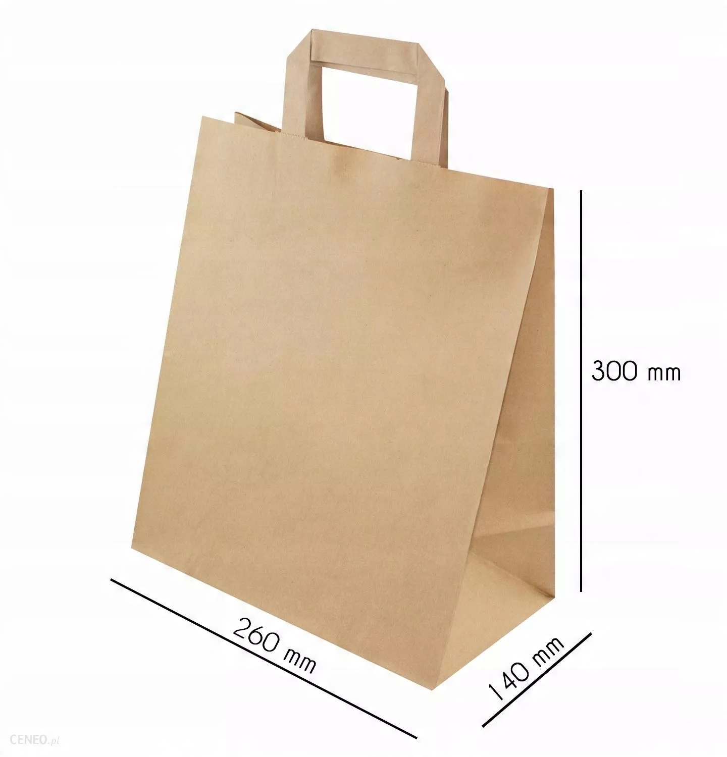 Torby papierowe brąz 260x140x300 mm ucho płaskie 70g/m2 (karton- 250 szt.)