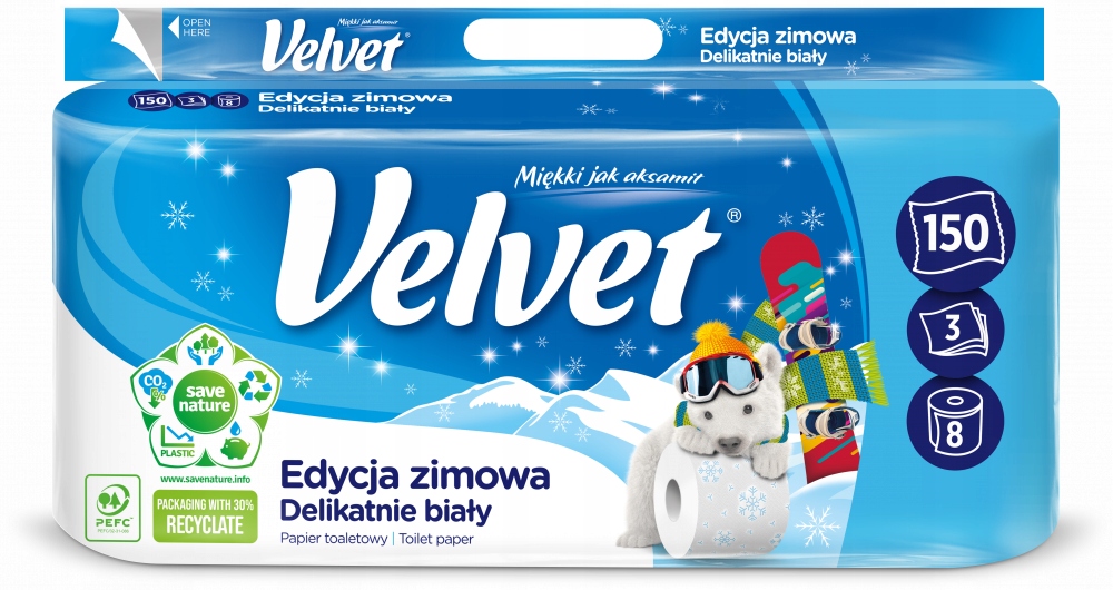 Najwyższa jakość produktów Velvet kreowana w poszanowaniu zasad zrównoważonego rozwoju – to cel działań. W procesie produkcji wykorzystywane są surowce ze źródeł zarządzanych odpowiedzialnie i kontrolowanych przez międzynarodowe, uznane instytucje zajmujące się gospodarką leśną. Wyroby VELVET posiadają certyfikaty FSC® (C119667), PEFC™ (PEFC/32-31-086)