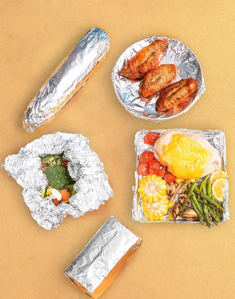Folia aluminiowa nie przepuszcza powietrza, światła i wody, dlatego świetnie nadaje się do pakowania żywności. Produkty dłużej zatrzymują smak i aromat i nie przejmują innych zapachów z lodówki.