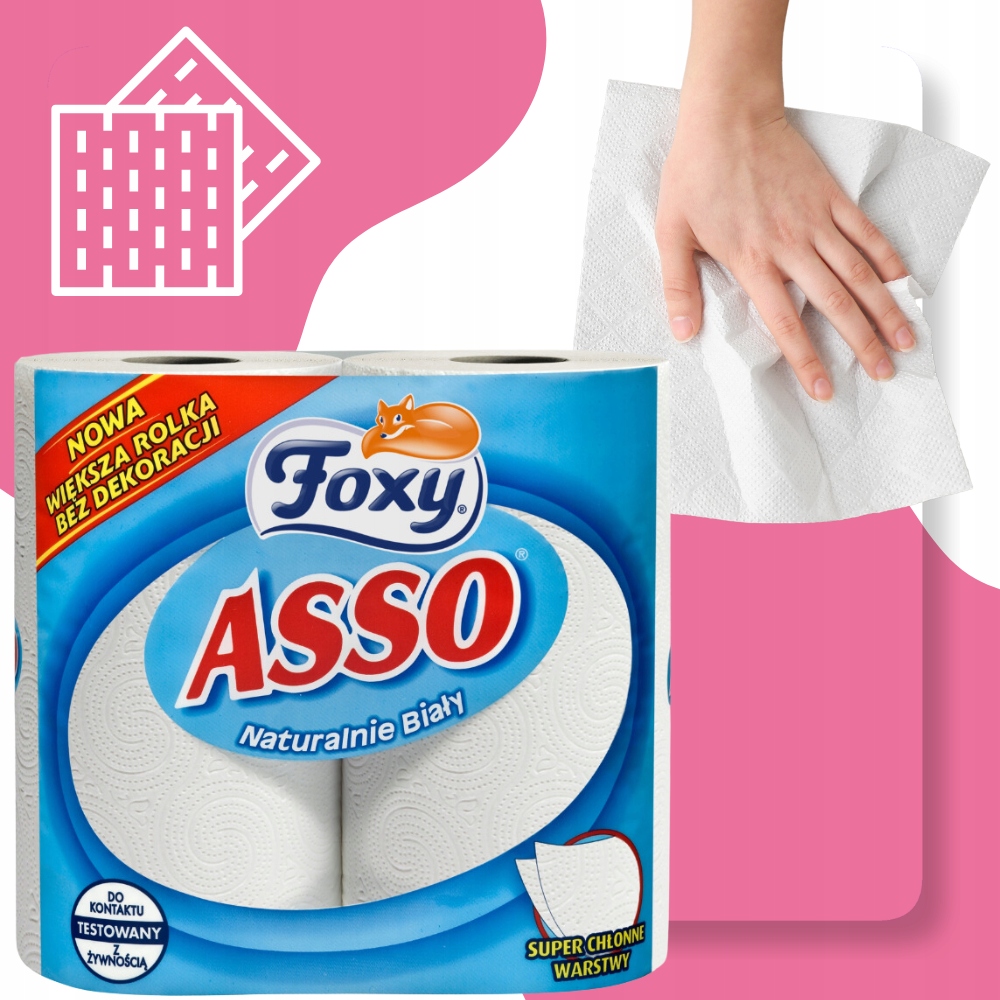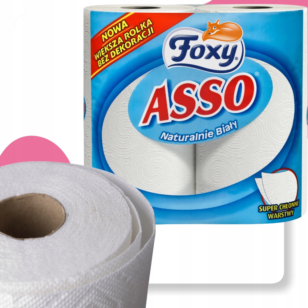 Ręcznik papierowy Foxy Asso z dwuwarstwową strukturą zapewnia niezrównaną wytrzymałość i doskonałą chłonność, co czyni go idealnym rozwiązaniem dla higieny i komfortu w Twoim domu.