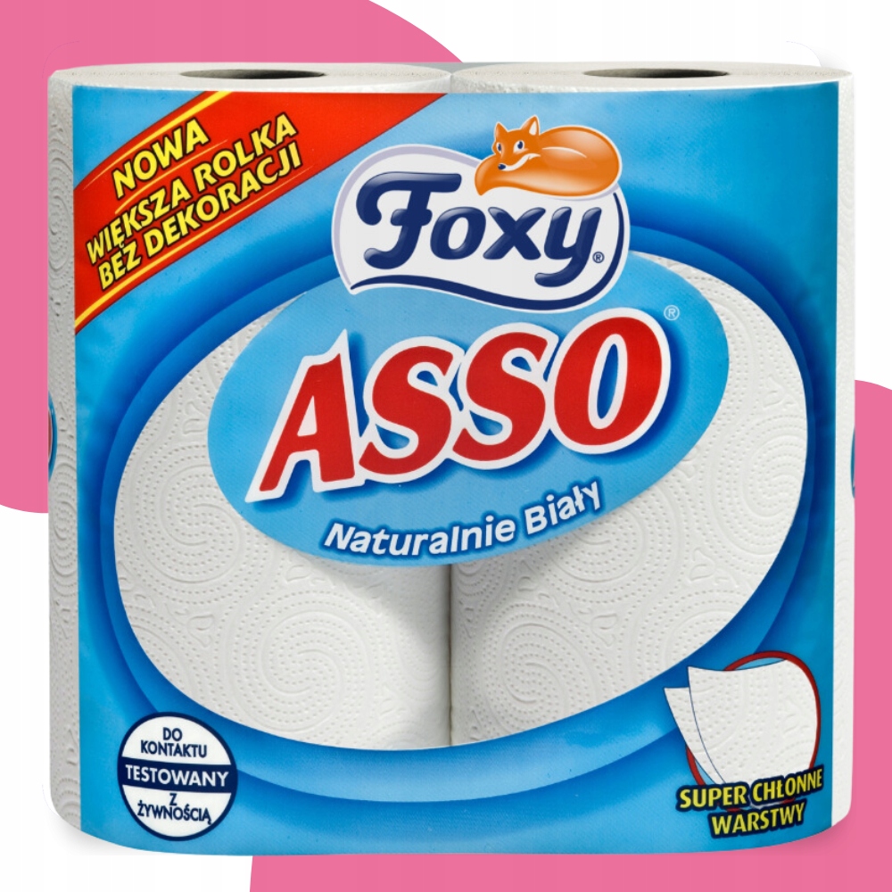 Ręcznik papierowy Foxy Asso z dwuwarstwową strukturą zapewnia niezrównaną wytrzymałość i doskonałą chłonność, co czyni go idealnym rozwiązaniem dla higieny i komfortu w Twoim domu.
