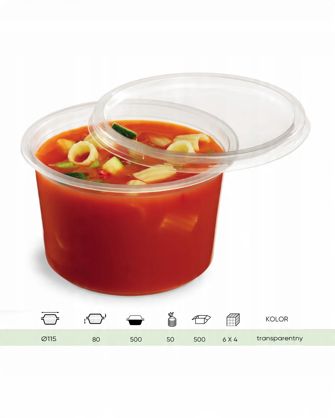 Wytrzymałe i szczelne pojemniki do zupy z polipropylenu przeznaczone są do pakowania nie tylko zup i pokarmów płynnych, ale również makaronów, sałatek, drobnych owoców, warzyw, sosów. Znajdą one szerokie zastosowanie w lokalach gastronomicznych, cateringu, restauracjach serwujących dania na wynos, stołówkach itp. Świetnie sprawdzą się także jako opakowania dla gastronomii na wynos.
