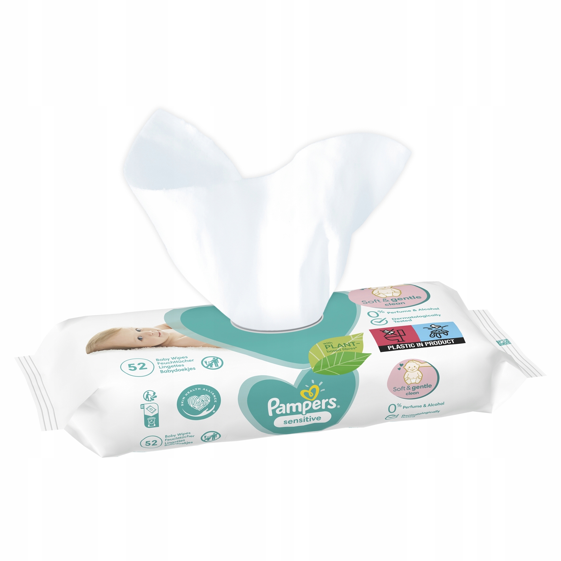 Wrażliwa skóra Twojego dziecka jest bardzo delikatna i zasługuje na łagodne oczyszczanie, począwszy od zmiany pieluszki. Chusteczki nawilżane Pampers Sensitive zapewniają teraz jeszcze delikatniejsze i skuteczniejsze oczyszczanie (w porównaniu z poprzednim produktem), pielęgnując wrażliwą skórę Twojego dziecka w możliwie najłagodniejszy sposób dzięki bardziej miękkiej i grubszej tkaninie. Enzymy znajdujące się w moczu i kale zmieniają pH skóry, zwiększając ryzyko wystąpienia podrażnień i wysypki. Wszystkie chusteczki nawilżane Pampers zawierają unikalną formułę, która chroni naturalne pH skóry lepiej niż bawełna i woda, oczyszczając nawet najbardziej wrażliwą skórę i chroniąc ją przed podrażnieniami. Chusteczki Pampers Sensitive zostały przetestowane dermatologicznie i zatwierdzone przez dermatologów z organizacji Skin Health Alliance. Ponieważ chusteczki Pampers Sensitive zostały zaprojektowane z myślą o najdelikatniejszej skórze dziecka, nie zawierają alkoholu, substancji zapachowych, barwników.