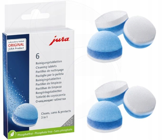Silna świadomość ekologiczna ma w JURA równie długą tradycję, jak zrównoważone obchodzenie się z zasobami i energią. Dlatego JURA w swoich oryginalnych tabletkach czyszczących stosuje wyłącznie skład niezawierający fosforanów. Zoptymalizowana formuła gwarantuje higienę automatycznego ekspresu do kawy posiadającą certyfikat TÜV i jednocześnie dba o środowisko.