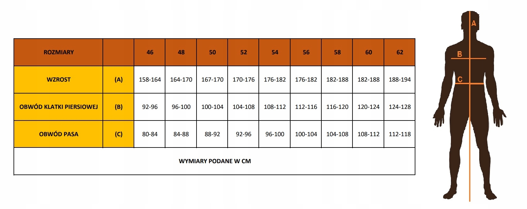 ✅ Rozmiary: Dostępne w rozmiarach od 48 do 62, zapewniające szeroki zakres dopasowania do indywidualnych potrzeb użytkowników