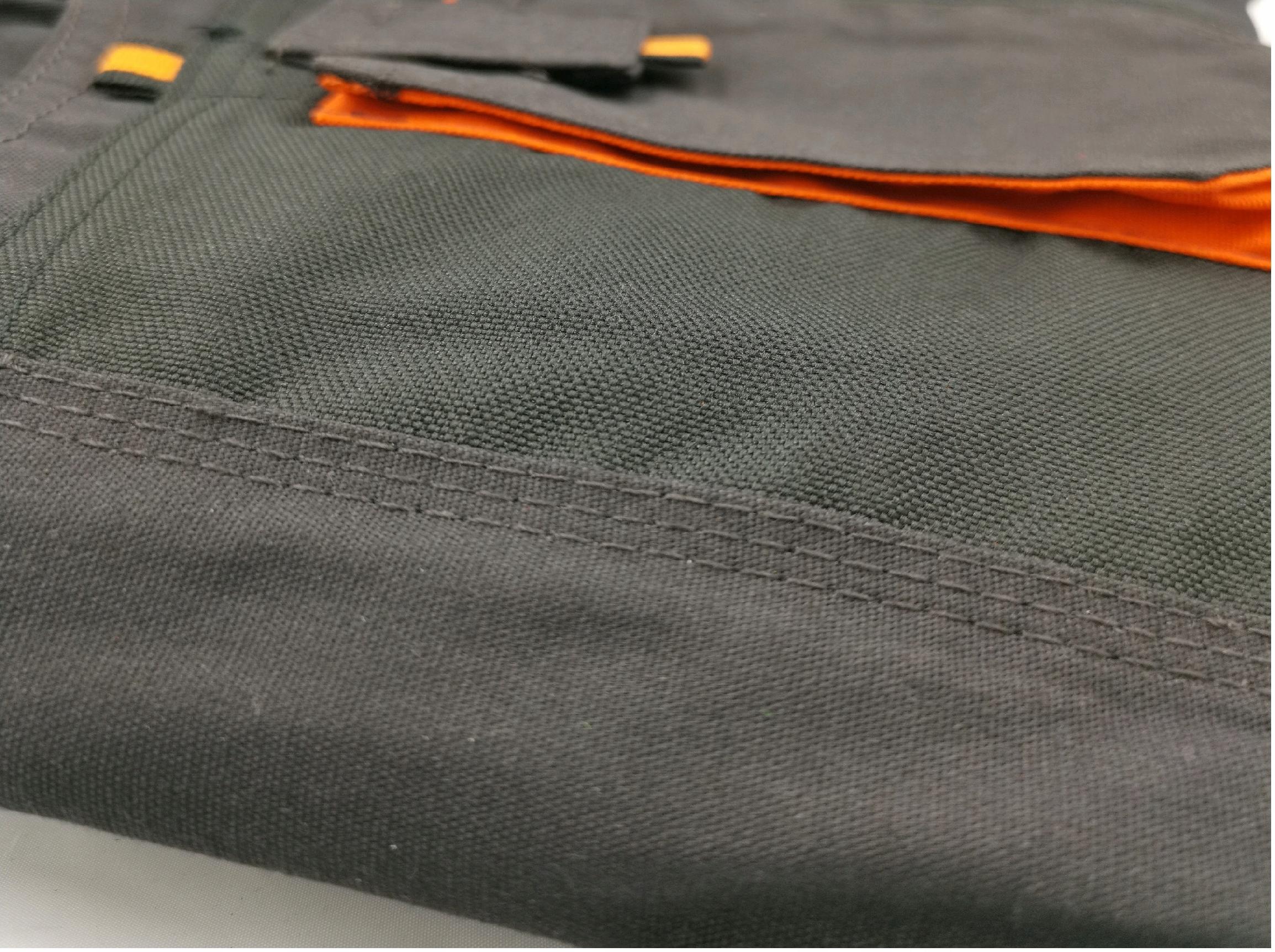 ✅ Wzmocnienia: Wzmocnienia z materiału zabezpieczającego przed przetarciem na kieszeniach i kolanach, z możliwością zastosowania wkładek nakolannikowych, zapewniające dodatkową ochronę i wygodę podczas pracy w trudnych warunkach