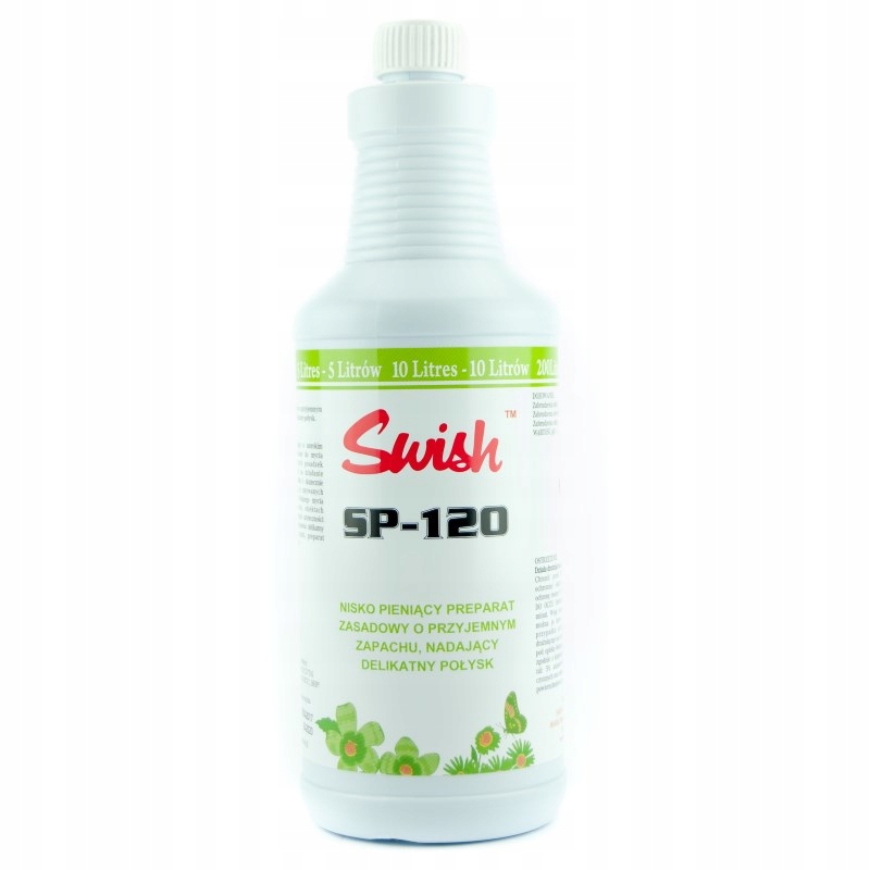 Nowoczesna receptura Swish SP – 120 nie tylko zapewni perfekcyjną czystość eksploatowanym powierzchniom, ale także zneutralizuje przykre zapachy, zastępując je utrzymującą się przez długi czas odprężającą, świeżą wonią, oraz nada naturalny połysk.