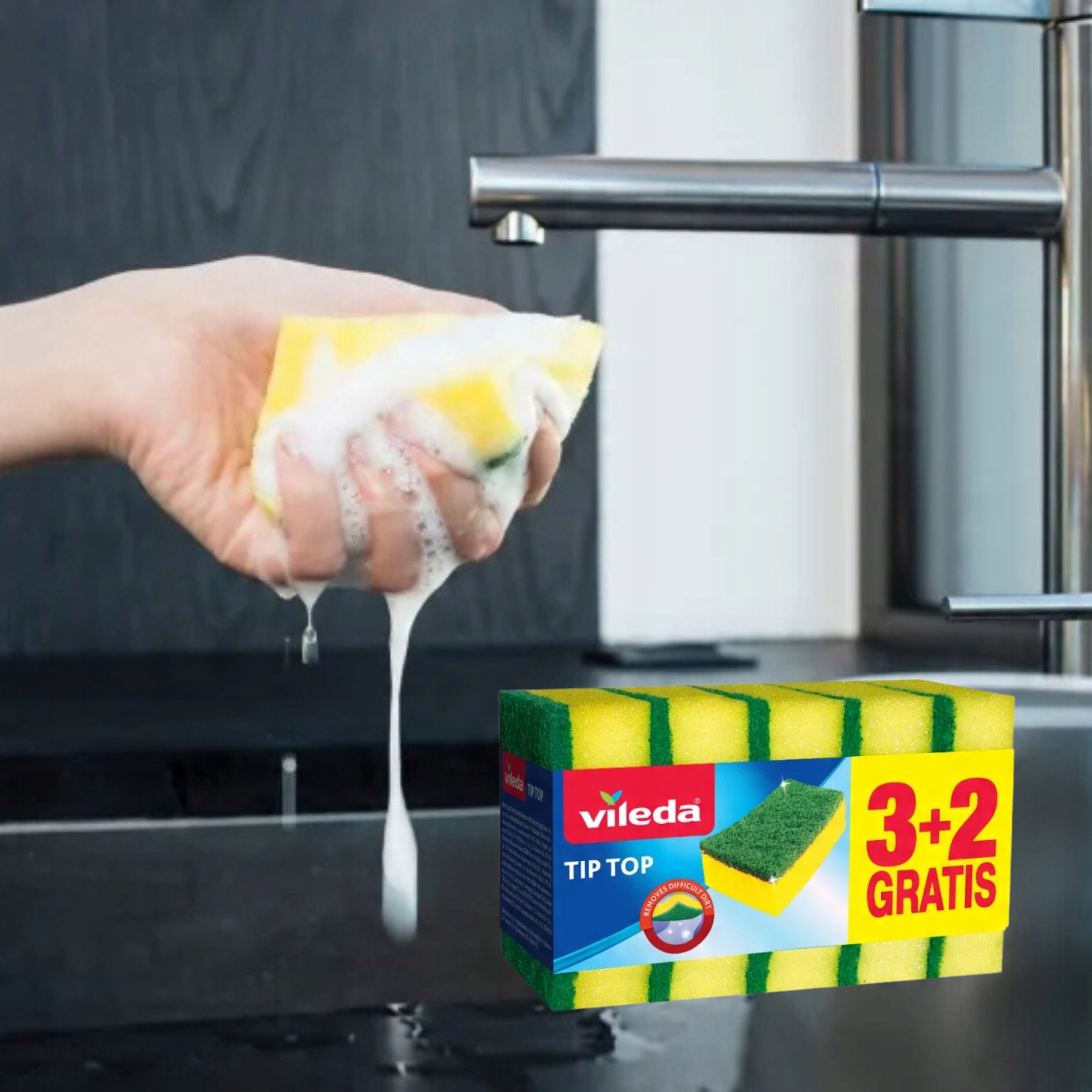 - Wysoka jakość – Zmywak Tip Top wykonany jest z wytrzymałej, elastycznej pianki, która nie traci swoich właściwości nawet po wielu użyciach.
