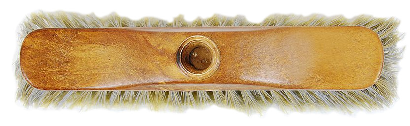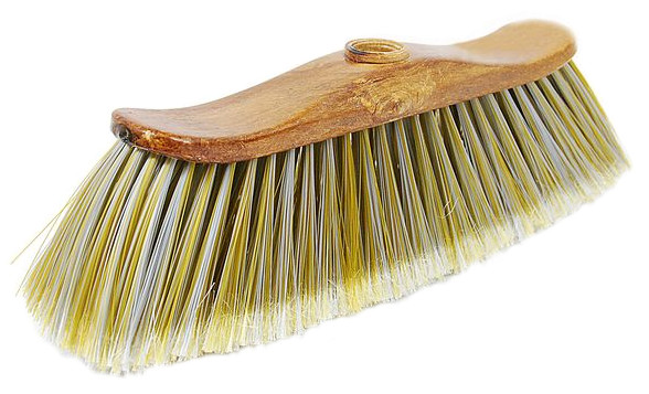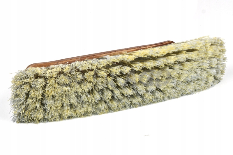 Włosie wykonane z włókien syntetycznych rozczepionych na końcach. Szczotka posiada gwint pasujący do większości kijów.