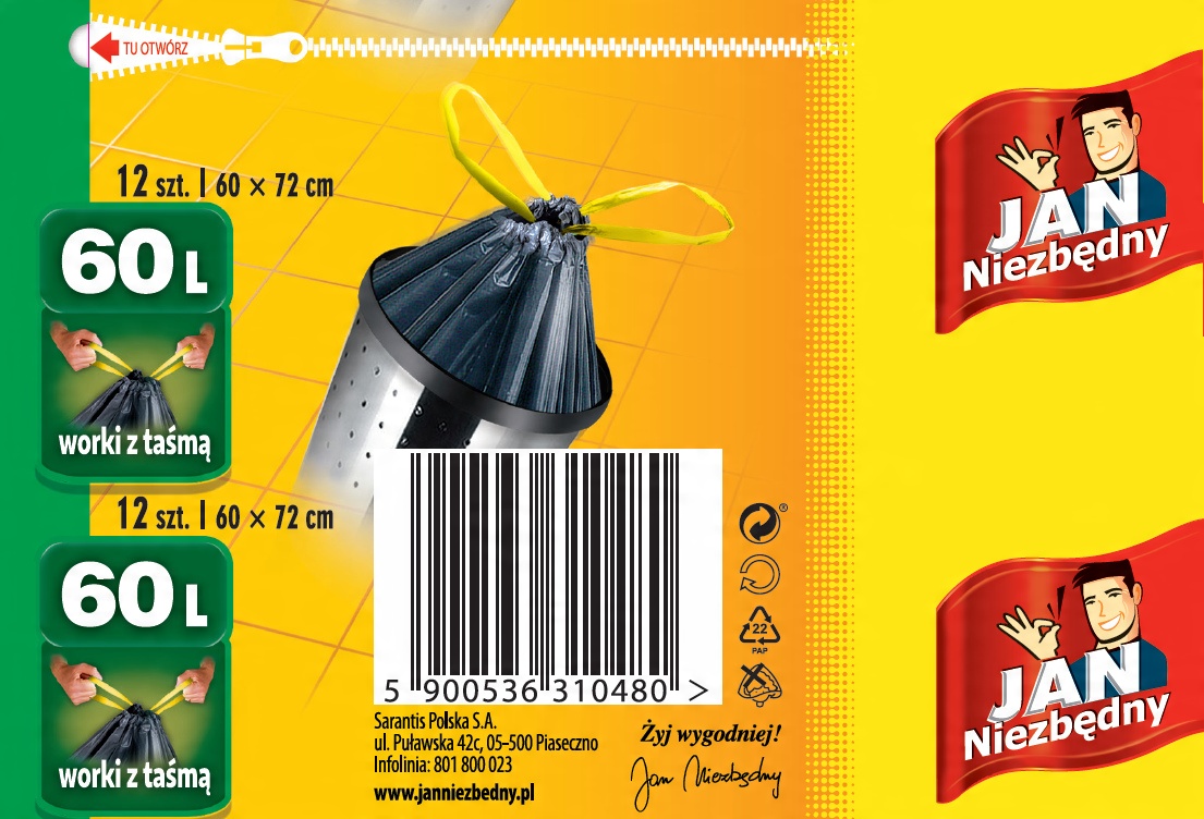 Strona główna » Sklep » Worki na śmieci Jan Niezbędny z taśmą 60l 12 szt.
