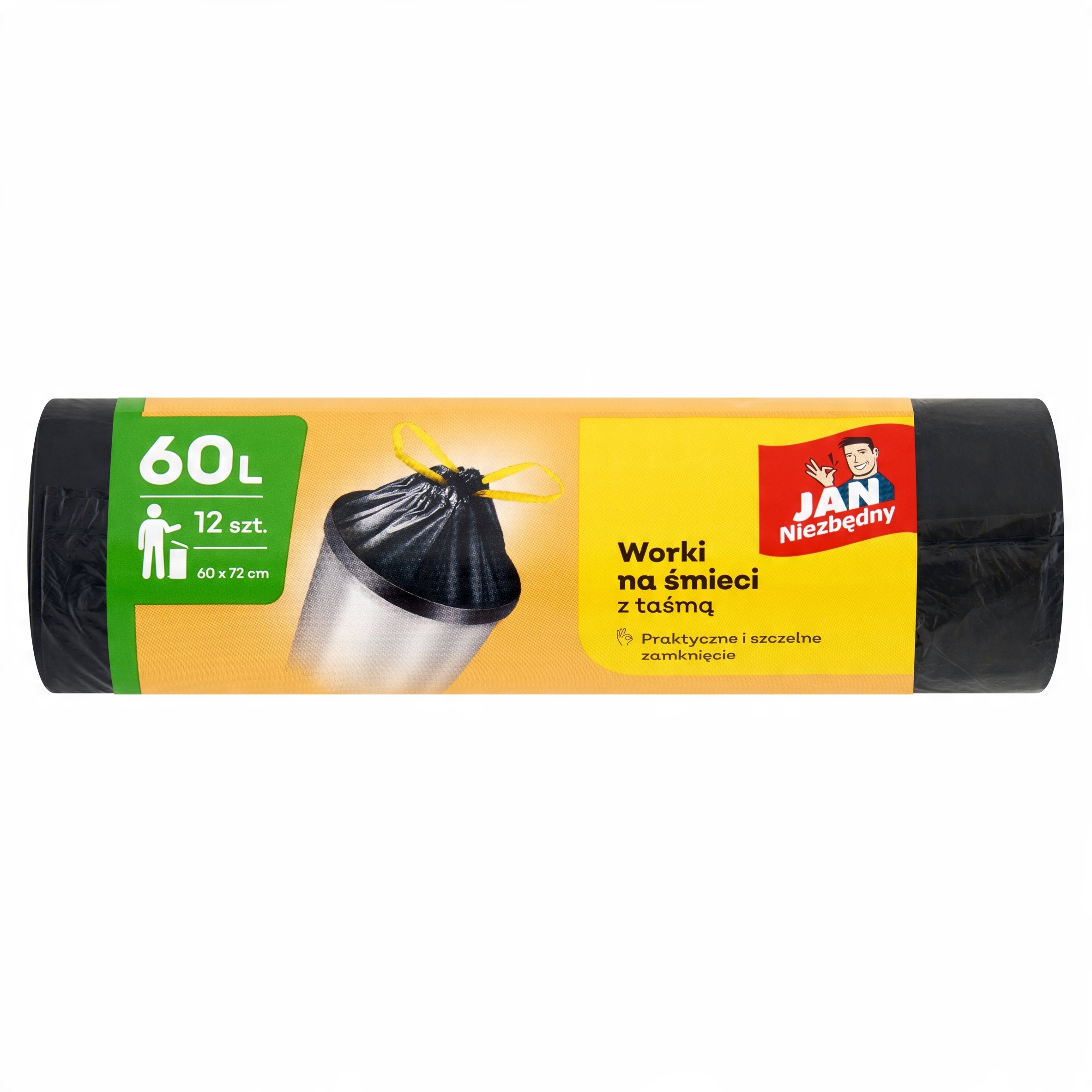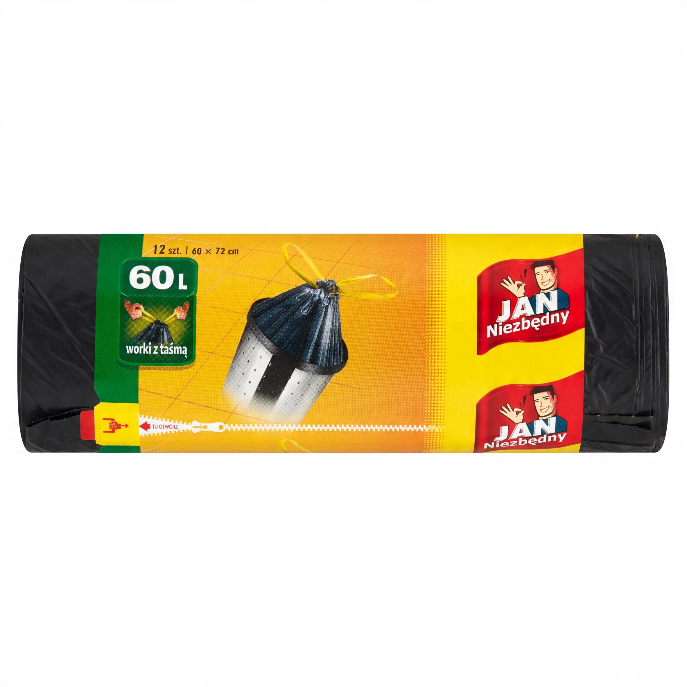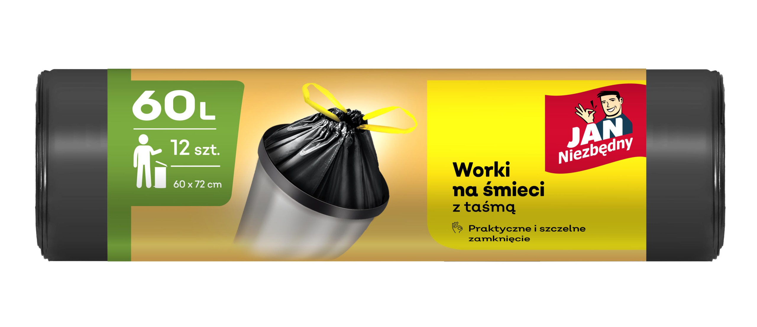 Worki na śmieci Jan Niezbędny z taśmą 60l 12 szt.