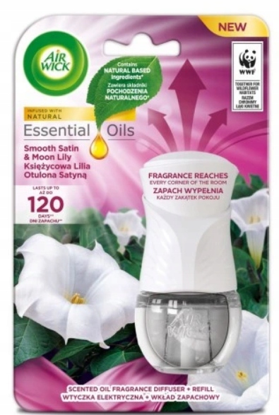 Wypełnij swoje wnętrze niezwykłym połączeniem lilii, róży i piwonii z nutą wanilii, uzupełnionym delikatną nutą rześkiego zielonego jabłka za pomocą wkładu do elektrycznego odświeżacza powietrza AIR WICK o zapachu Księżycowa Lilia Otulona Satyną. Jego bogaty aromat zostawi długotrwały ślad świeżości w Twoim domu. Ten zapach pochodzi z kolekcji Essential Oils, gdzie kompozycje zapachowe czerpią inspirację z naturalnych esencji owoców, kwiatów i roślin, tworząc wyjątkową atmosferę w Twoim wnętrzu.