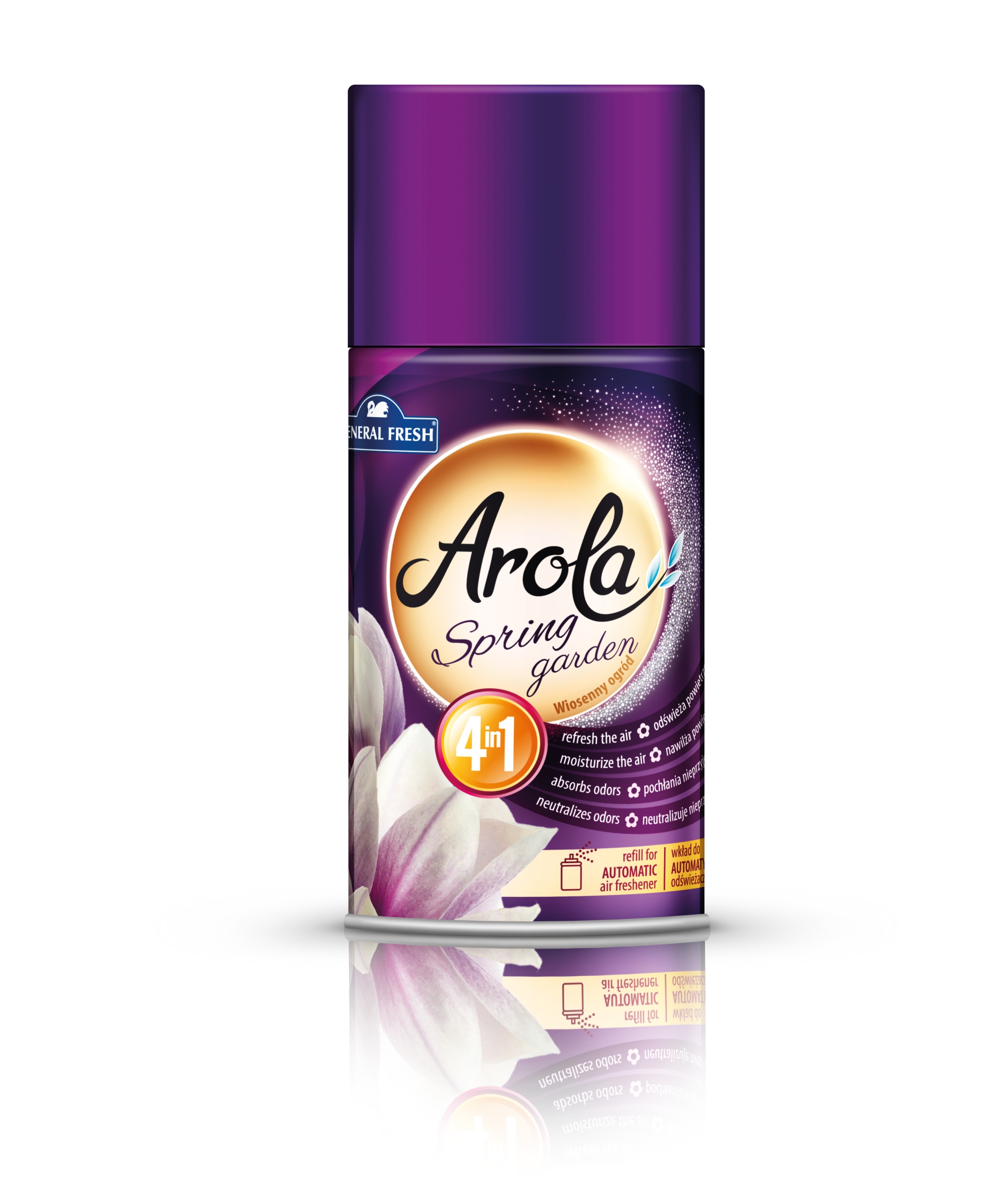 General Fresh Freshmatick zapas Wiosenny Ogród 250ml spray Marka General Fresh przedstawia zapas do automatycznego odświeżacza powietrza Freshmatick. To produkt, który skutecznie odświeża i nawilża powietrze, wnosząc do Twojego domu uczucie głębokiej, długotrwałej świeżości. Natychmiast neutralizuje nieprzyjemne zapachy, nadając każdemu z pomieszczeń niepowtarzalny charakter.