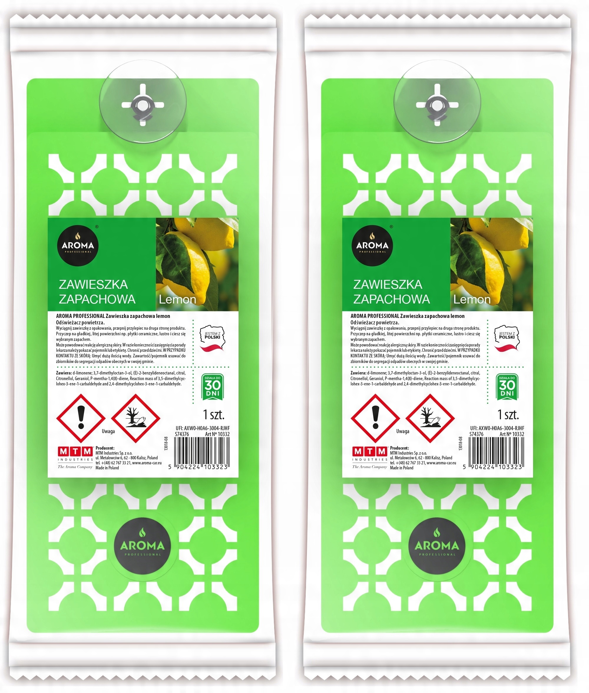 - w zestawie: 2 zawieszki zapachowe Lemon.