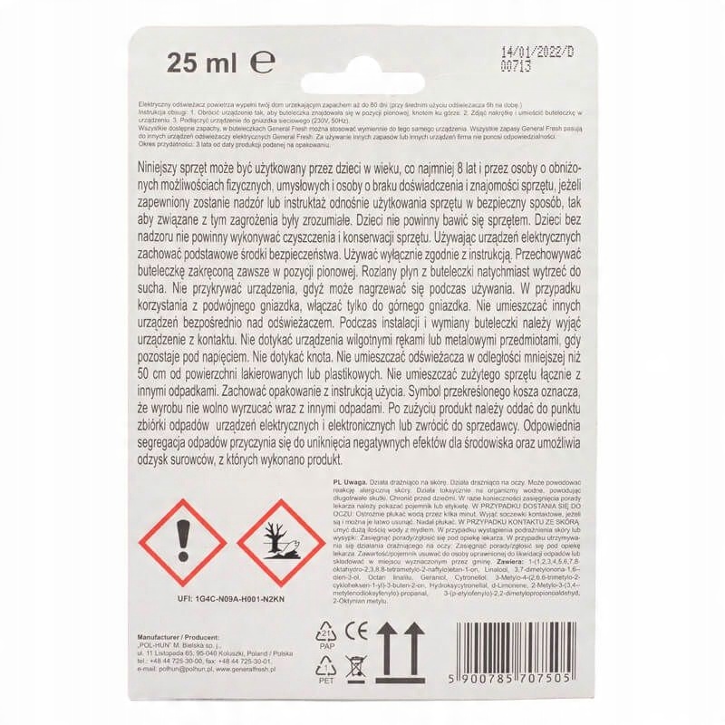 - Wszystkie zapasy General Fresh pasują do innych urządzeń odświeżaczy elektrycznych General Fresh.