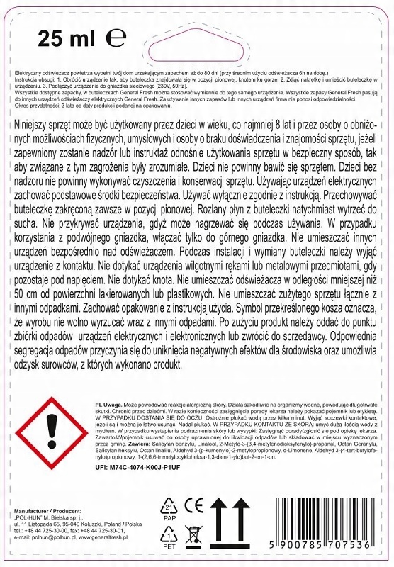 Silnie skondensowana formuła, wypełni każdy dom zapachem świeżości.