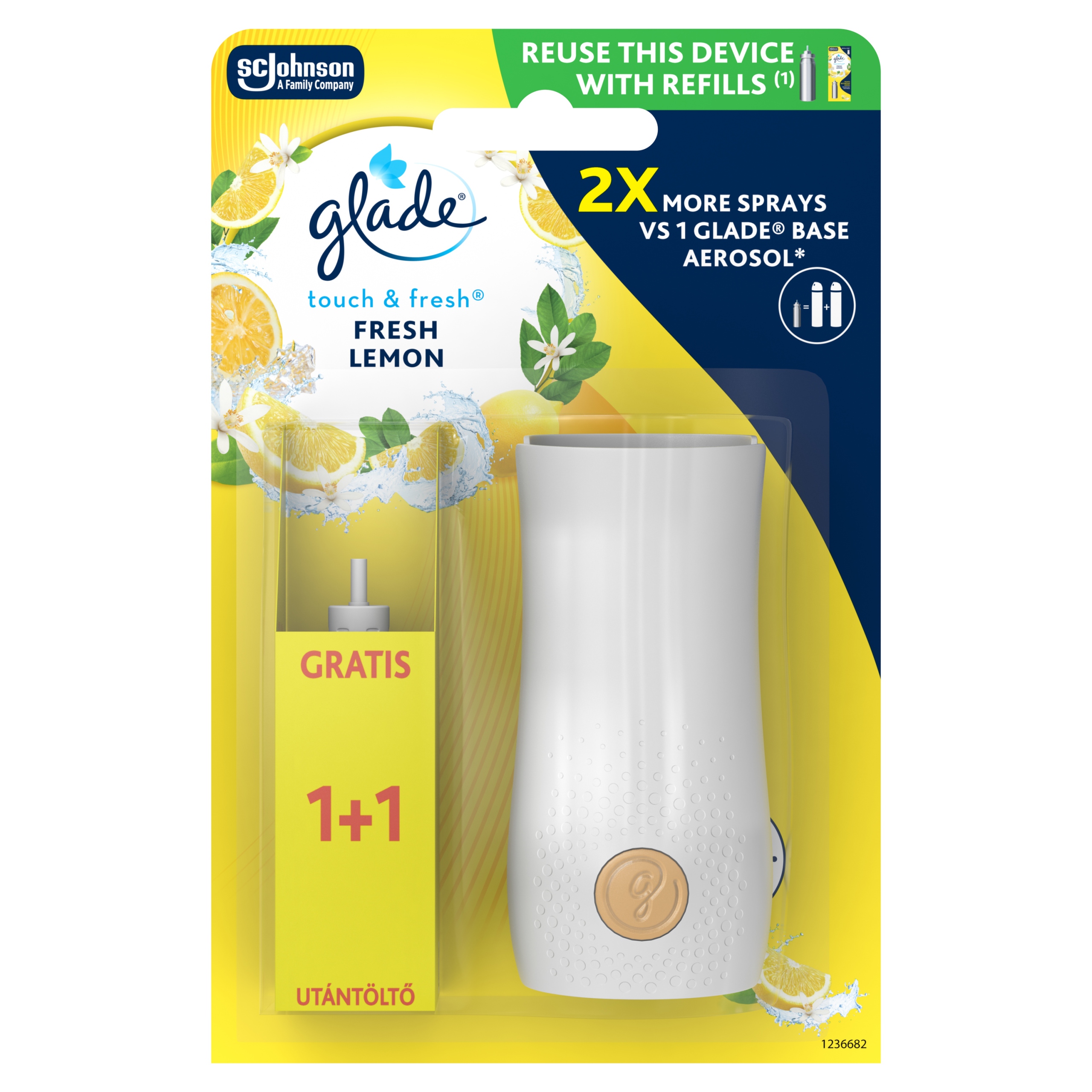 Glade touch & fresh Fresh Lemon, Poczuj radość życia dzięki świeżym nutom cytryny, złocistej mandarynki i soczystej brzoskwini, które tworzą niepowtarzalne, delikatne warstwy owocowej świeżości., , Glade touch & fresh to skoncentrowana świeżość*** w dyskretnym, stylowym opakowaniu. Wystarczy jedno dotknięcie, aby wypełnić pomieszczenie świeżością., , ***W porównaniu do koncentracji zapachu w aerozolu Glade.