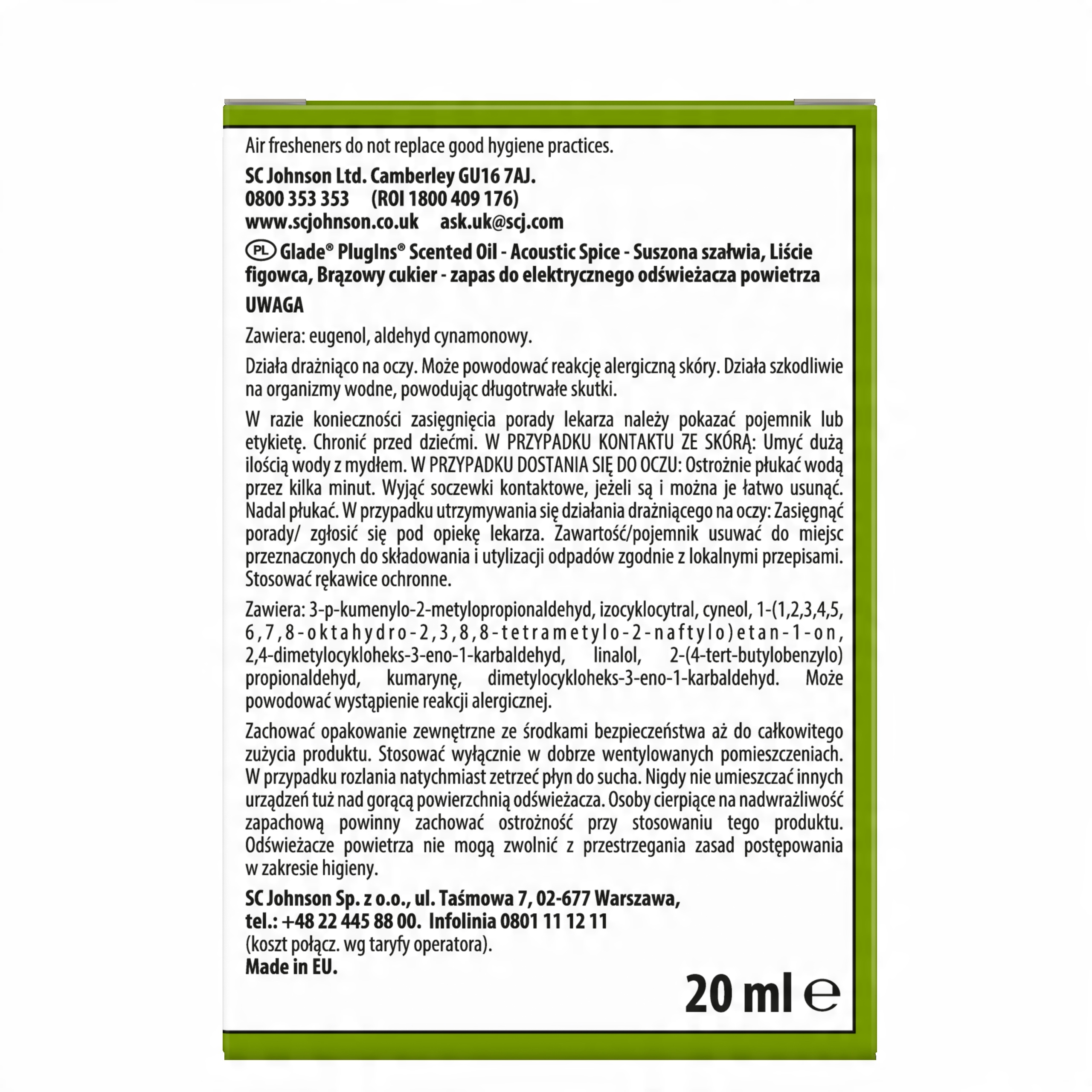 Glade wkład elektryczny do odświeżacza 20ml Acoustic Spice