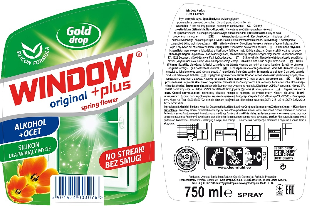 Gold Drop Window Plus płyn do mycia szyb zapas 750ml Spring Flower