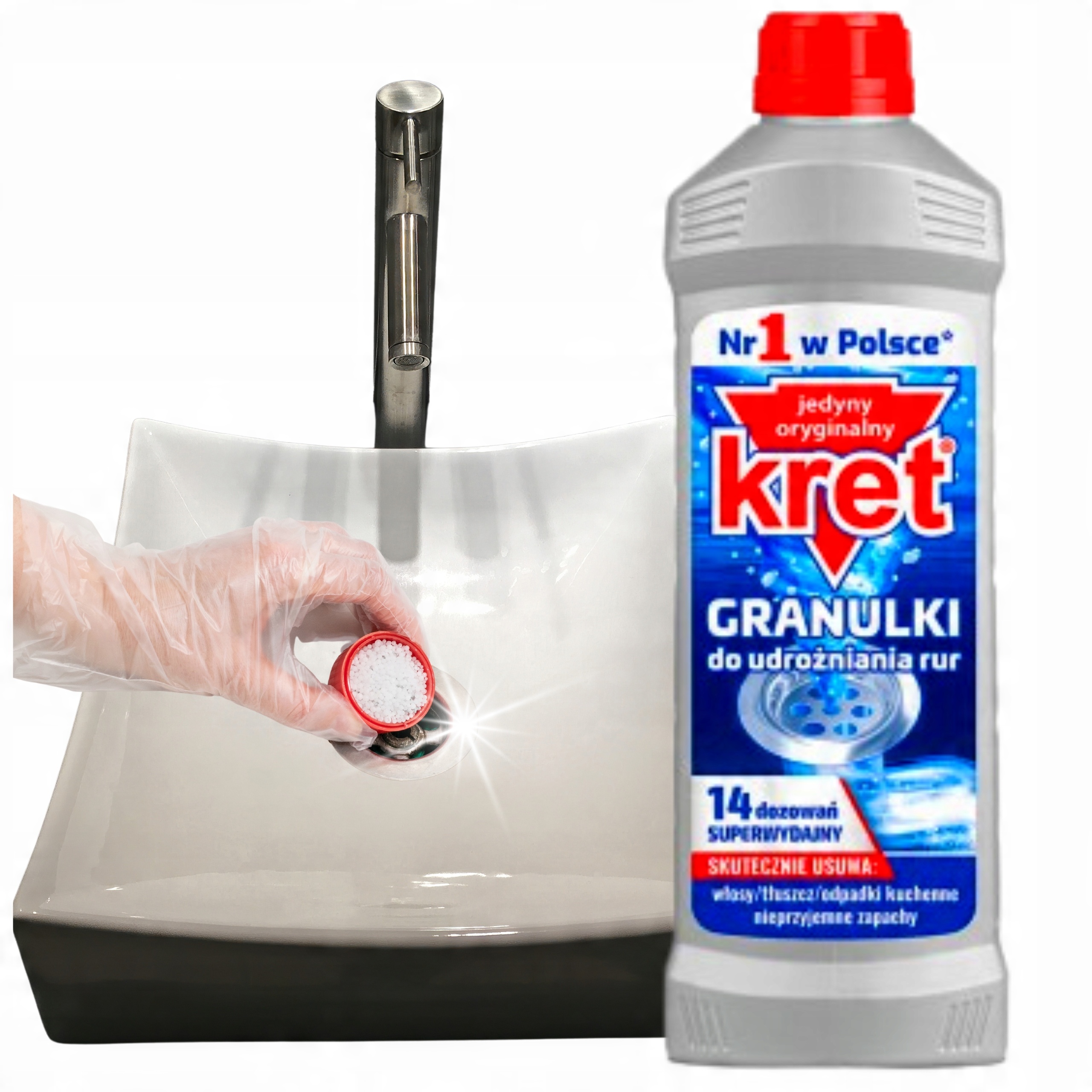 Silne GRANULKI Kret do szybkiego udrażniania zapchanych rur i odpływów – BEZPROBLEMOWE odblokowanie zapchanej kanalizacji i usuwanie nieprzyjemnego zapachu.