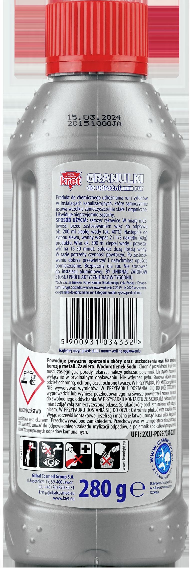 Kret silne granulki do UDRAŻNIANIA rur Syfonów 560g 14 dozowań udrażniacz
