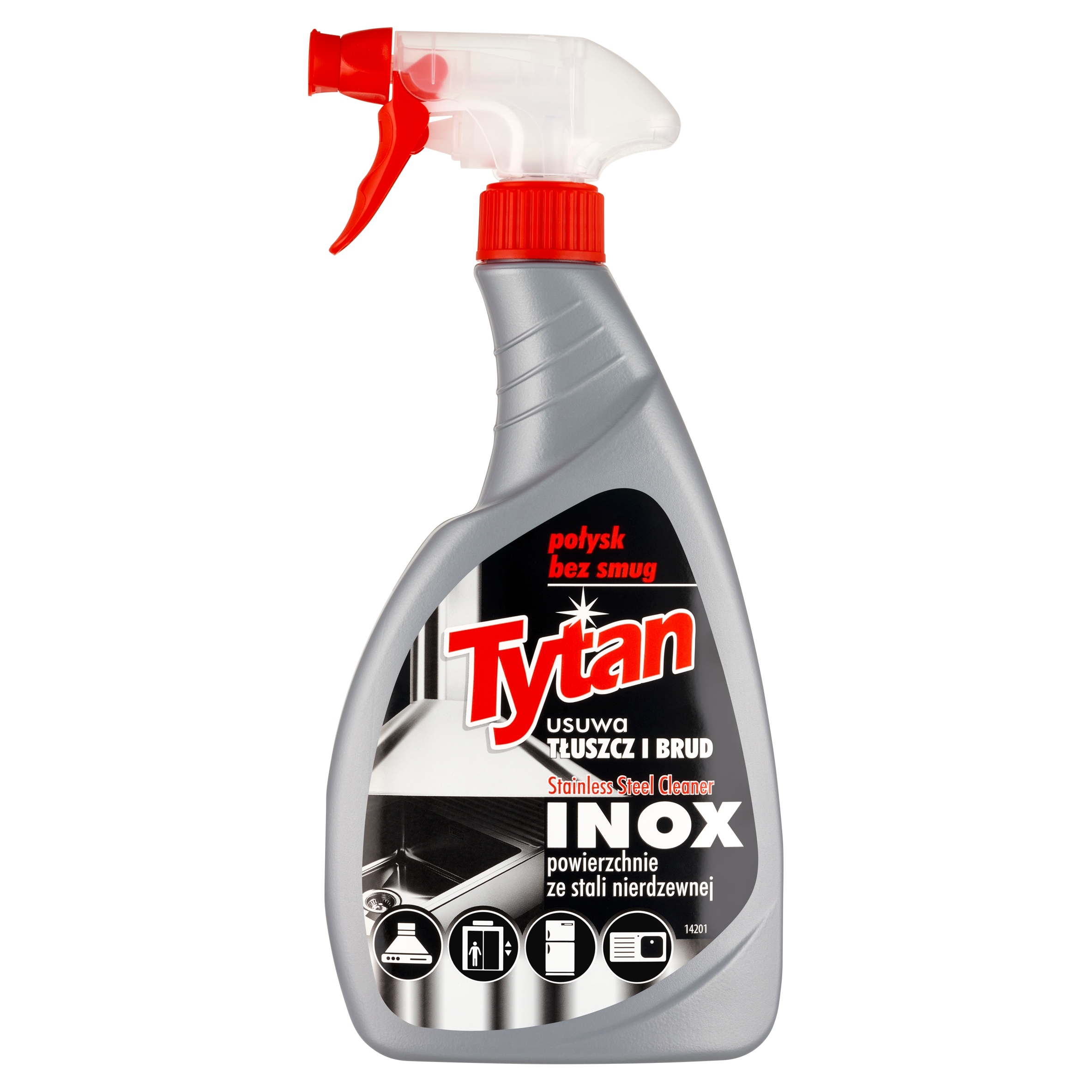 Płyn Tytan Inox stal nierdzewna spray to produkt przeznaczony do czyszczenia powierzchni ze stali nierdzewnej, niezależnie czy chcesz umyć powierzchnię lodówki czy zlewu – płyn Inox pozostawi powierzchnię lśniącą i bez smug.Doskonały do stalowych elementów lodówek, kuchenek mikrofalowych, piecy, listew bocznych płyt grzewczych oraz piekarników. Przeznaczony jest rownież do systematycznego czyszczenia i pielęgnacji wewnętrznej zabudowy wind, balustrad, klamek czy gzymsów. Świetnie czyści i konserwuje zewnętrzne części garnków, okucia żeglarskie oraz stalowe elementy dekoracyjne. Zalecamy używania szmatki lub miękkiej strony gąbki, aby uniknąć zarysowań na błyszczących powierzchniach. Formuła produktu oraz specjalny rozpylacz pozwala na usunięcie nawet starych, zaschniętych zabrudzeń.