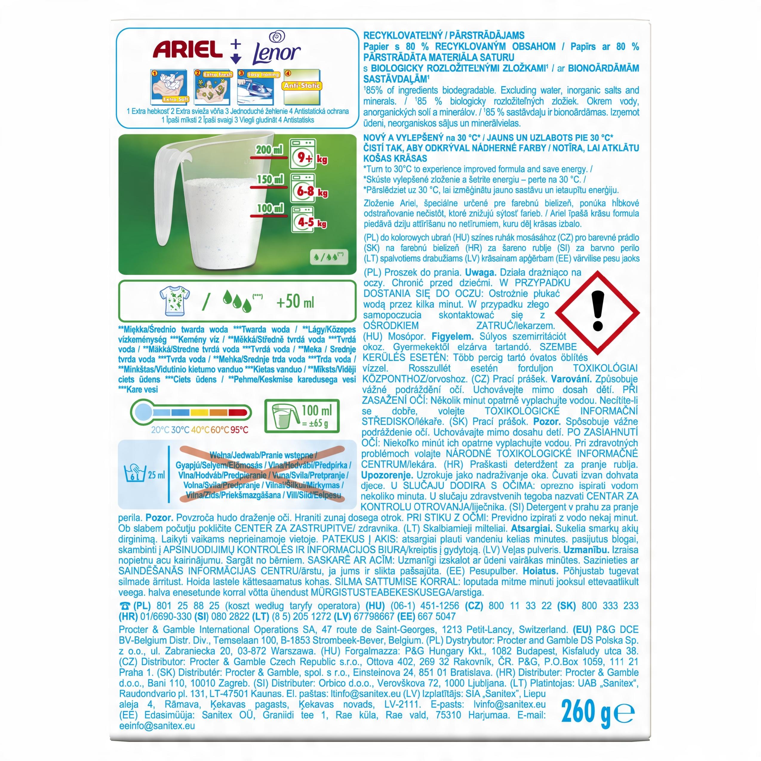 Ariel Color proszek do prania z technologią Anti-Residue, która zapobiega powstawaniu osadów, zapewnia doskonałe efekty prania Ariel w chłodniejszych cyklach, zachowując intensywność kolorów. Innowacyjna formuła AquaPuder szybko rozpuszcza się w kontakcie z wodą, natychmiast się aktywuje i dociera w głąb włókien, zapewniając doskonałe efekty prania i blask kolorów nawet w niższej temperaturze. Proszek do prania Ariel usuwa uporczywe plamy – nawet te, które są powodowane przez substancje przyczyniające się do powstawania przykrych zapachów, takie jak pot. Unikalna technologia zapobiegająca powstawaniu osadów pomaga przeciwdziałać gromadzeniu się pozostałości proszku na tkaninach.