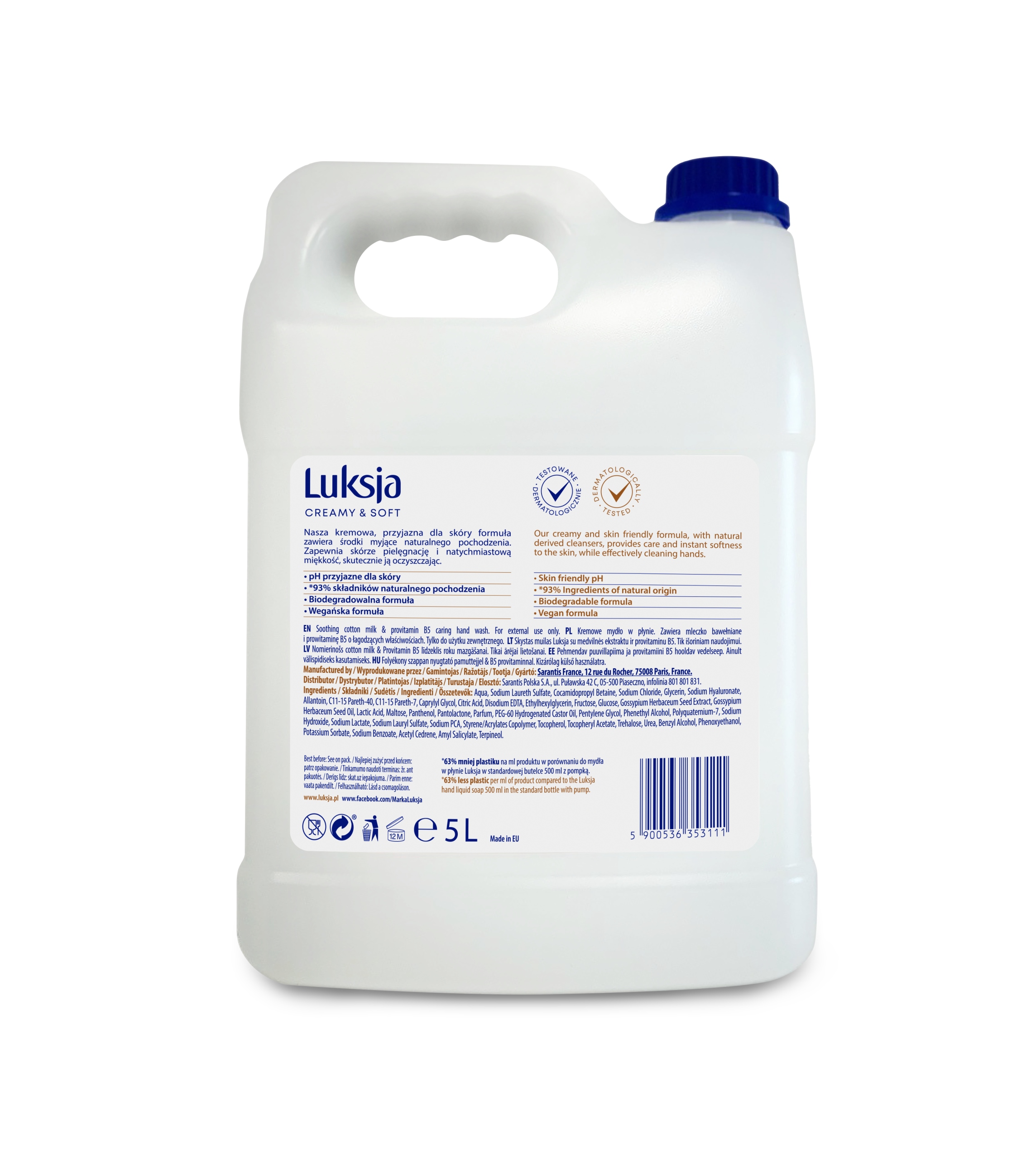 Strona główna » Sklep » Luksja Creamy&Soft Mydło w płynie 5l Mleczko bawełniane i prowitamina B5