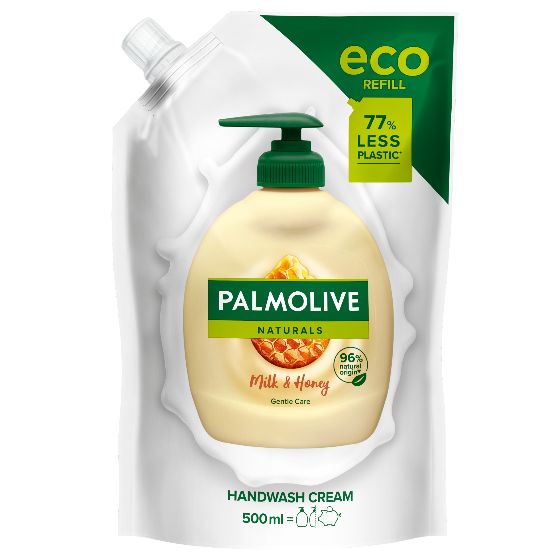 Kremowe mydło do rąk w płynie zawierające proteiny z mleka i ekstrakt z miodu delikatnie myje i pielęgnuje skórę dłoni. Testowane dermatologicznie. Zapas pomaga chronić środowisko naturalne, poprzez wykorzystanie o 75% mniej plastiku na ml produktu niż mydło w płynie z pompką Palmolive (300 ml).Pobudź ciało i umysł linią Palmolive Naturals. Inspirowana dobroczynnymi właściwościami natury, została opracowane, aby pomóc Ci zwolnić i skupić się na zmysłach w zabieganym, dynamicznie zmieniającym się świecie.Delikatna formuła Palmolive Naturals chronią naturalne pH Twojej skóry i dbają o jej naturalne nawilżenie. Została stworzona z trosce o naturalnie dobre samopoczucie Twoje i Twoich bliskich.W Palmolive wierzymy, że odrobina natury na co dzień pozwala nam poczuć się w pełni sobą.