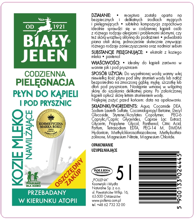 2xBIAŁY JELEŃ płyn do kąpieli z kozim mlekiem 5L