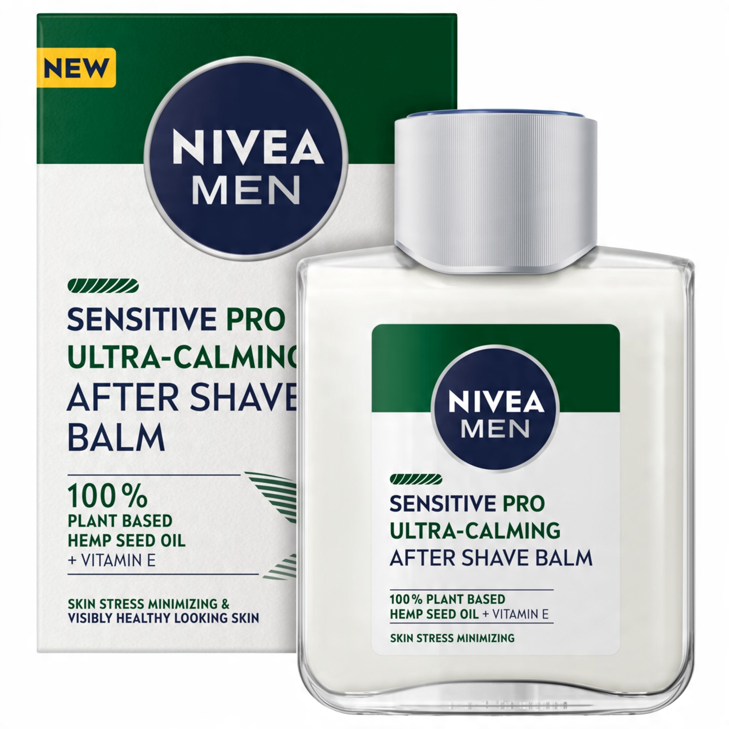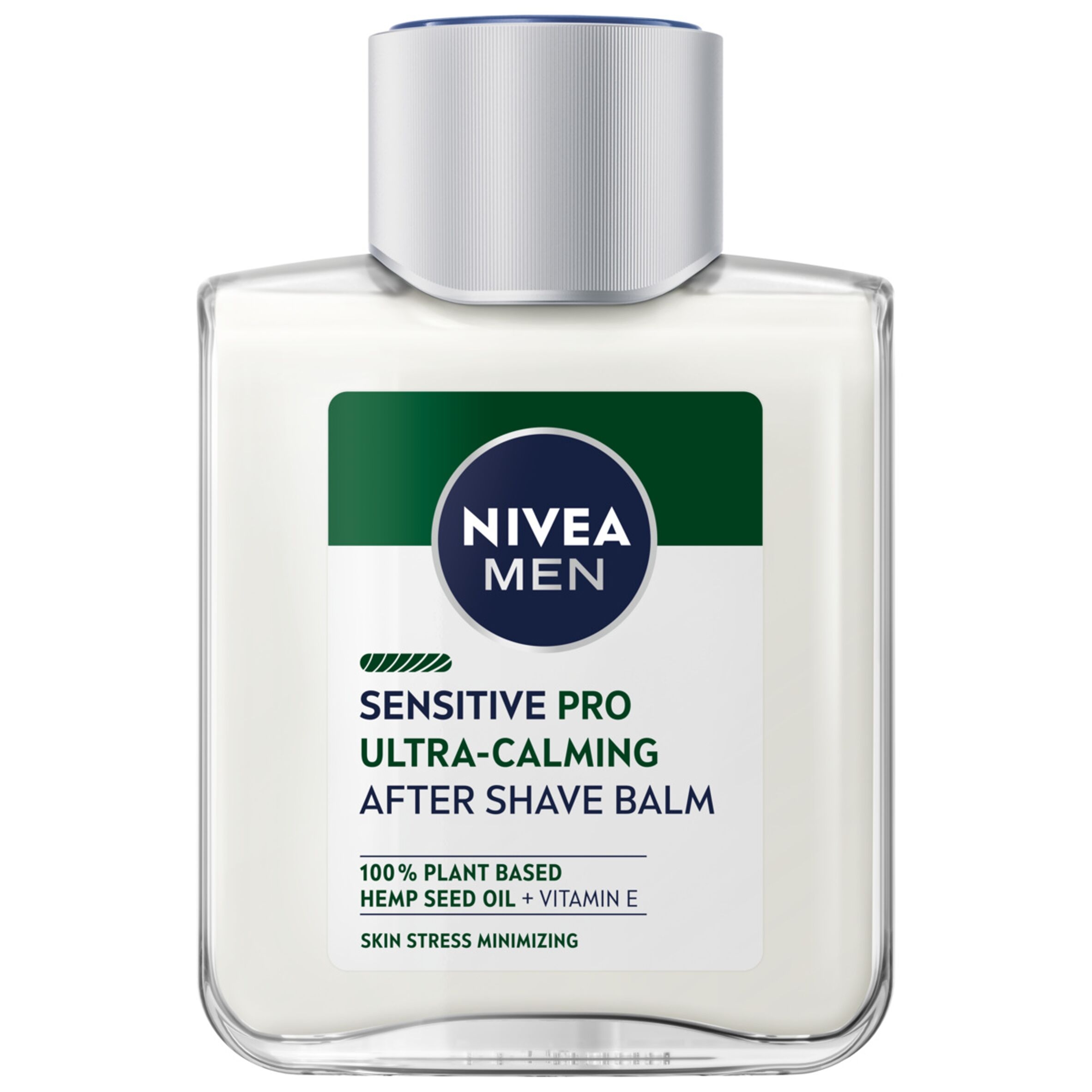 NIVEA® MEN SENSITIVE PRO Ultra-Calming balsam po goleniu z 100% organicznym olejem z nasion konopnych i witaminą E. Przynosi natychmiastowe nawilżenie i wygładzenie zestresowanej skórze.