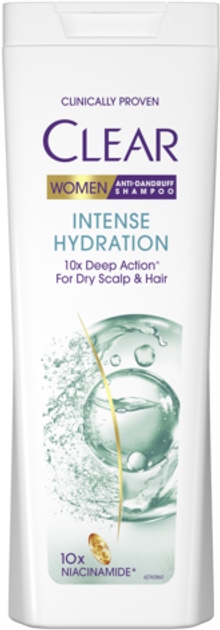 CLEAR INTENSE HYDRATION WOMEN 360ML to innowacyjny szampon stworzony z myślą o kobietach, który oferuje zaawansowaną pielęgnację zarówno skóry głowy, jak i włosów. Produkt, który przeszedł kliniczne testy, zapewnia: